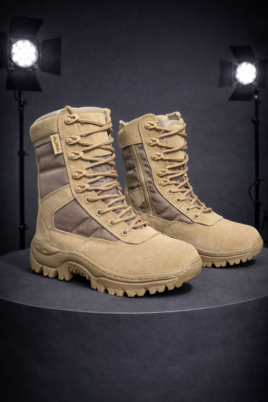 Bota táctica de alto rendimiento, elaborada en carnaza resistente y lona HTR 1000, con suela de caucho vulcanizada y cocida que ofrece excelente agarre, durabilidad y firmeza en cualquier terreno. Ideal para uso exigente