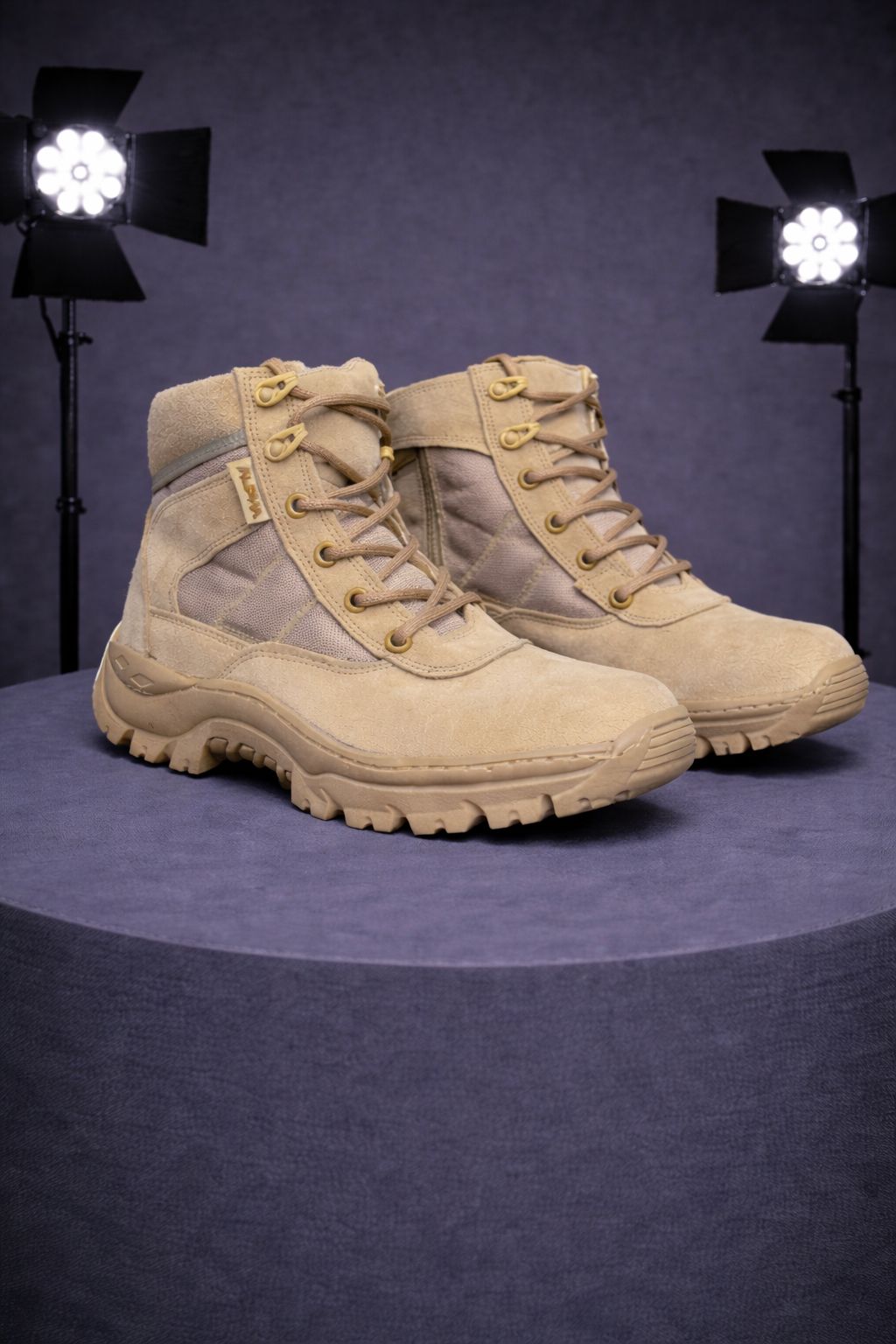 Botín táctico de alto rendimiento, elaborado en carnaza resistente y lona HTR 1000, con suela de caucho vulcanizado y cocido que ofrece excelente agarre, durabilidad y firmeza en cualquier terreno. Ideal para uso exigente.